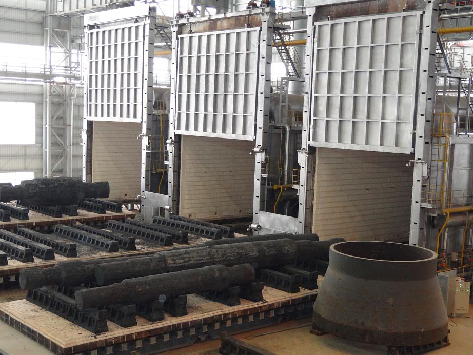 鋁合金淬火爐適用于對(duì)大、中型鋁合金產(chǎn)品零部件的固溶熱處理及時(shí)效處理,由加熱爐罩和移動(dòng)式底架組成的。方形(或圓形)爐罩頂裝有起重機(jī),通過鏈條和掛鉤可將料筐吊至爐膛。爐罩由型鋼支起,底部有氣動(dòng)(或電動(dòng))操作的爐門。位于爐罩下方的底架可沿軌道移動(dòng)、定位,底架上面載有淬火水槽和料筐等。